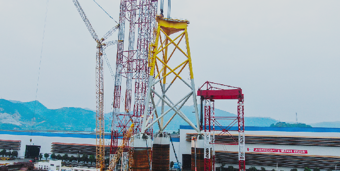 長樂外海海上風(fēng)電場C區(qū)項(xiàng)目位于福州市長樂區(qū)東部海域、閩江口南岸,場址距離長 樂海岸線31千米~50千米海域,平均水深37米~45 米。福建船政承接該項(xiàng)目25套吸 力式導(dǎo)管架制作工程,其中單套三筒導(dǎo)管架高度近百米,底部最大尺寸超40米,單套導(dǎo)管 架最大重量約1200噸。